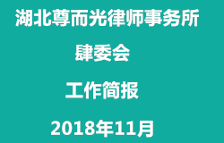 湖北尊而光律师事务所肆委员会工作简报 2018年11月月报 【简介】 为了帮助律师及律所更好的发展,充分发挥集体智慧,使律所获得更为良性的运行模式,湖北尊而光律师事务所设立以