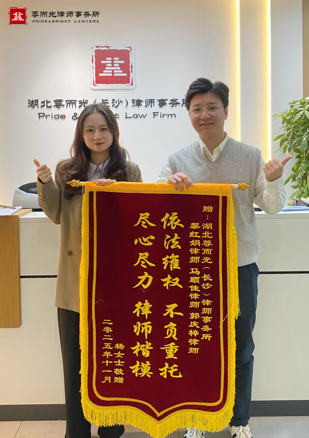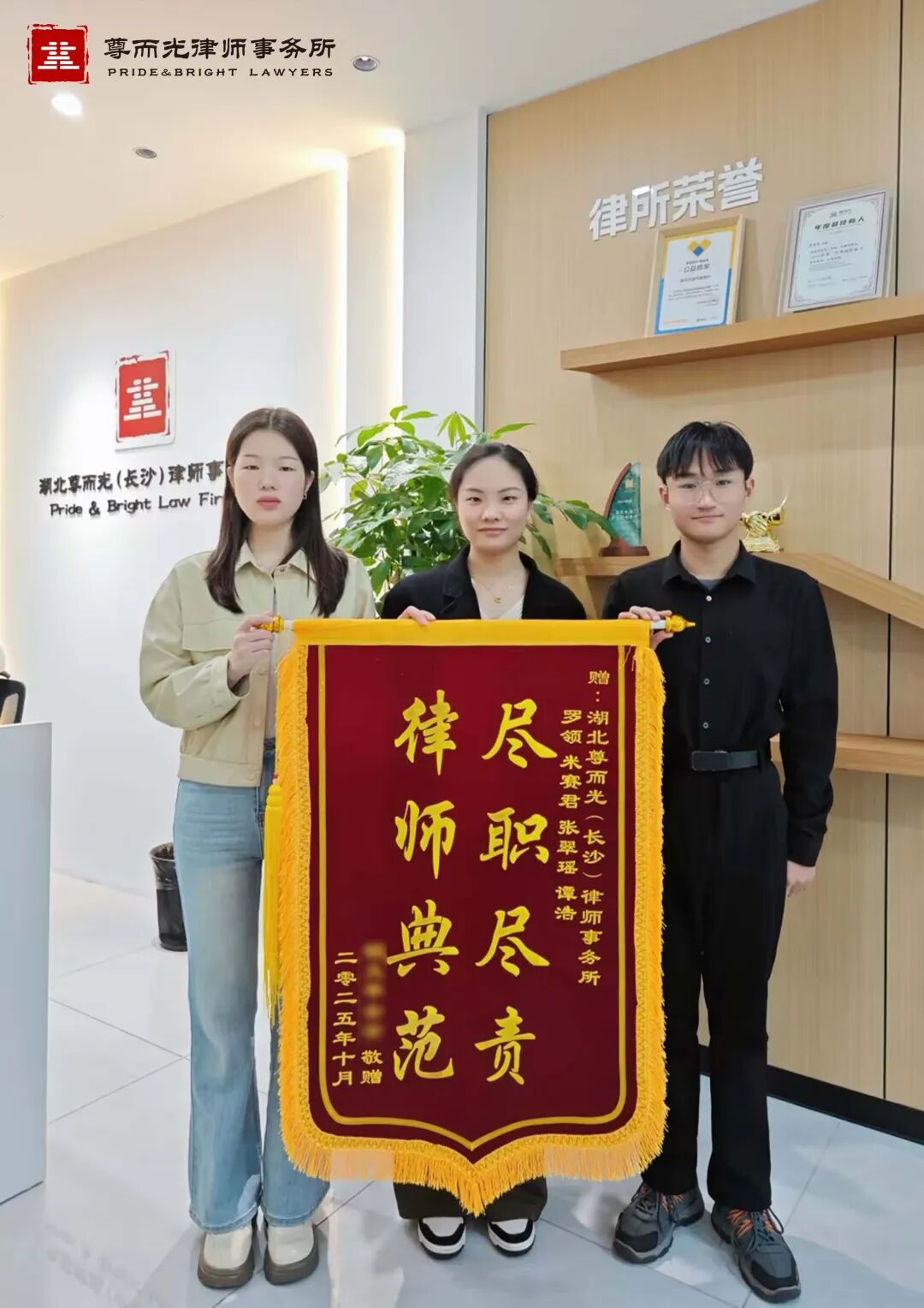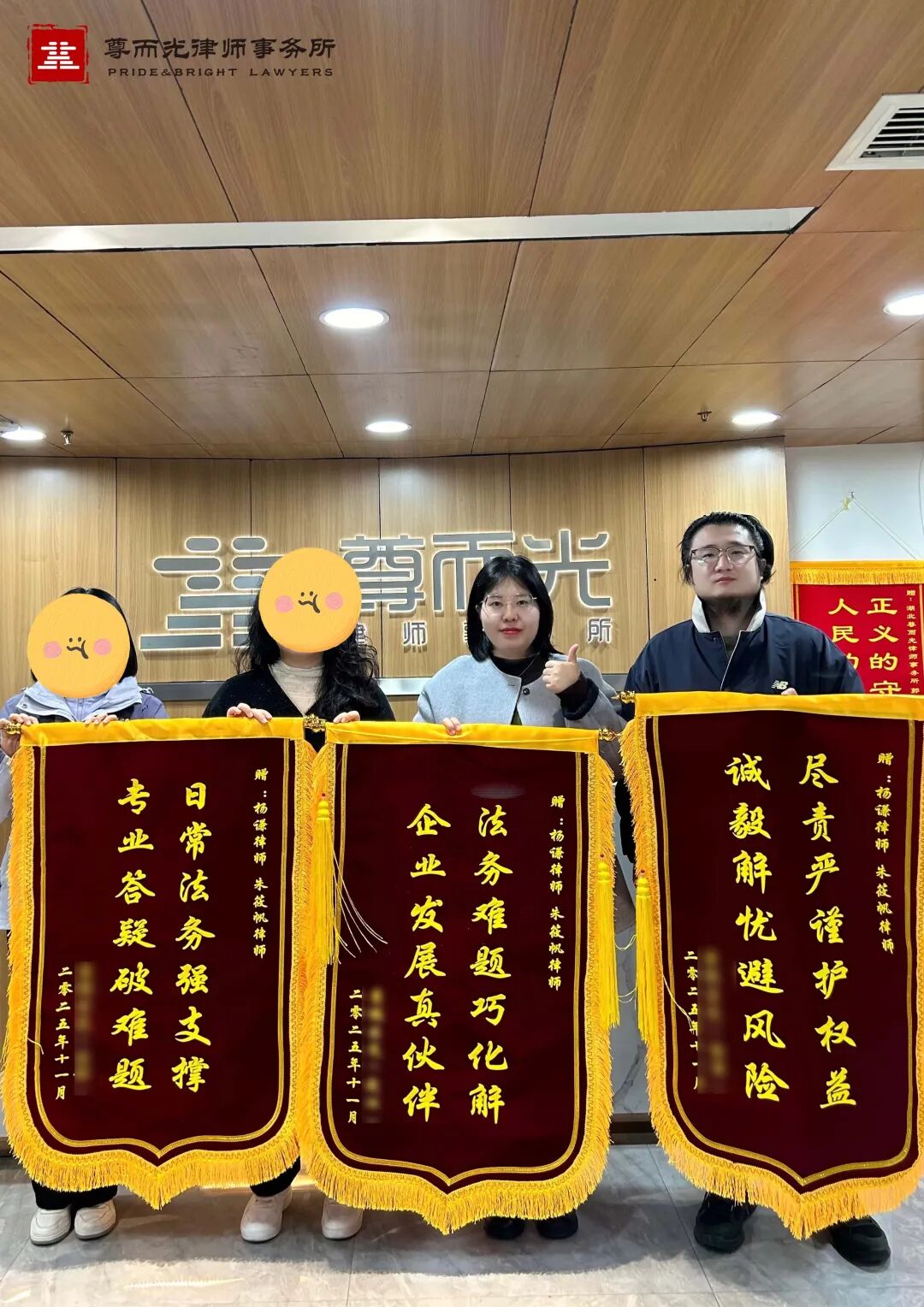 【获赠评语】日常法务强支撑,专业答疑破难题;法务难题巧化解,企业发展真伙伴;尽责严谨护权益,诚毅解忧避风港。