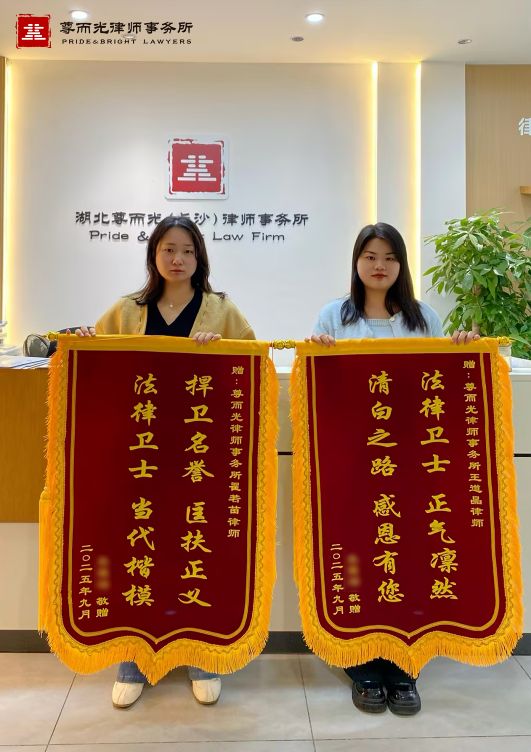 【获赠评语】捍卫名誉,匡扶正义,法律卫士,当代楷模;法律卫士,正气凛然,清白之路,感恩有您。